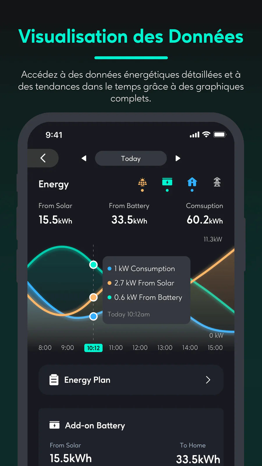 Accédez à des données détaillées sur l'énergie et les tendances au fil du temps grâce à des graphiques complets.